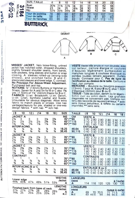 Butterick 3184 | Misses' Jacket | Size 8-12