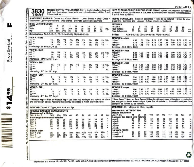 Condition: We believe this pattern is factory folded and complete, based on a quick examination of the package. However, we have not taken it fully out of the package and checked for each pattern piece. It is being sold as-is, based on this understanding, and the understanding that some patterns may be a bit discolored or torn on the outside packaging from age.