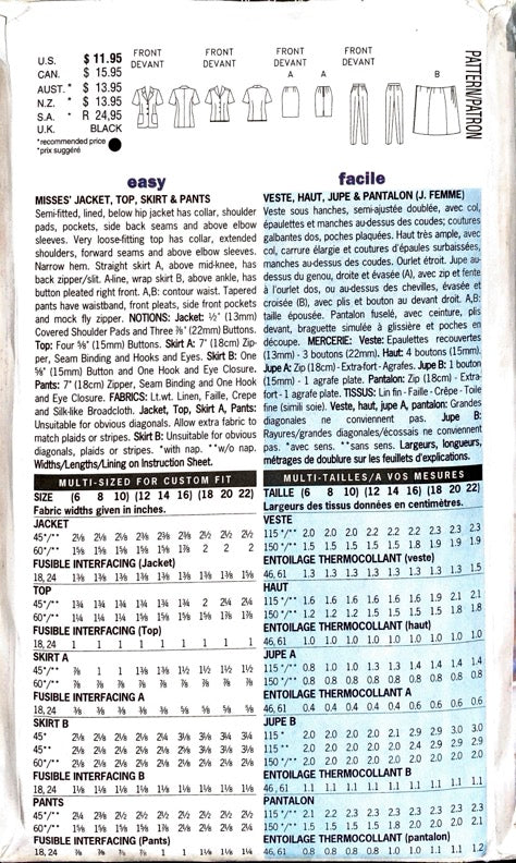 Condition: We believe this pattern is factory folded and complete, based on a quick examination of the package. However, we have not taken it fully out of the package and checked for each pattern piece. It is being sold as-is, based on this understanding, and the understanding that some patterns may be a bit discolored or torn on the outside packaging from age.