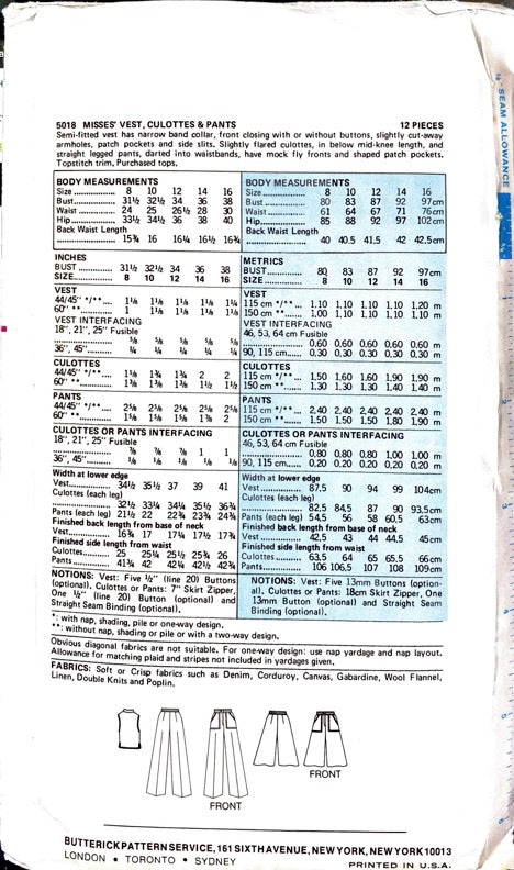 Condition: We believe this pattern is factory folded and complete, based on a quick examination of the package. However, we have not taken it fully out of the package and checked for each pattern piece. It is being sold as-is, based on this understanding, and the understanding that some patterns may be a bit discolored or torn on the outside packaging from age.