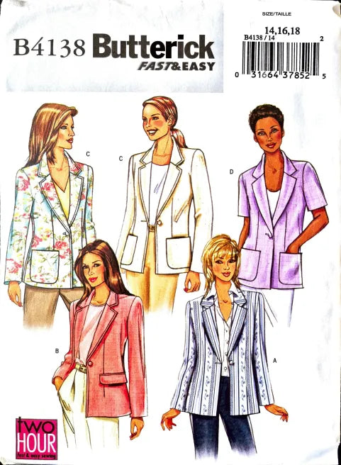 Butterick B4138 | Misses'/Misses' Petite Jacket | Size 14-18