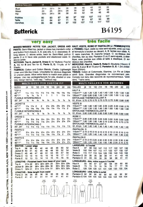 Butterick B4195 | Misses'/Misses' Petite Top, Jacket, Dress, & Pants | Size 8-12