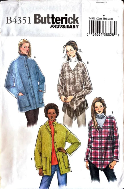 Butterick B4351 | Misses'/Misses' Petite Jacket & Poncho | Size XS-M