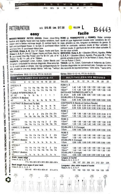Butterick B4443 | Misses'/Misses' Petite Dress | Size 16-22