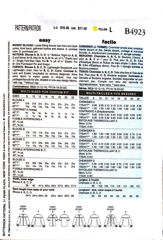 Butterick B4923 | Misses' Blouse | Size 8-14