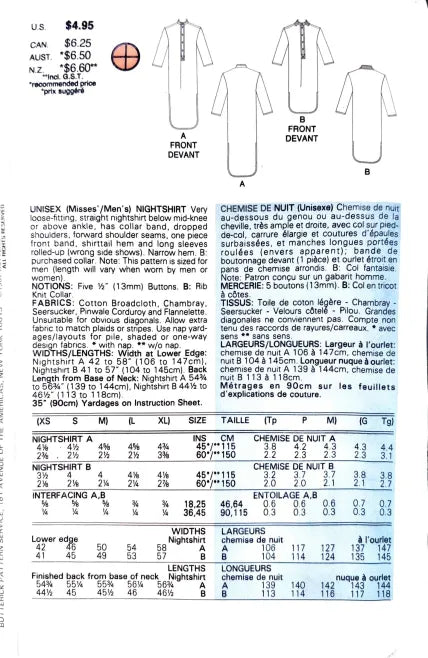 Butterick 5915 | Unisex Nightshirt | Size L-XL