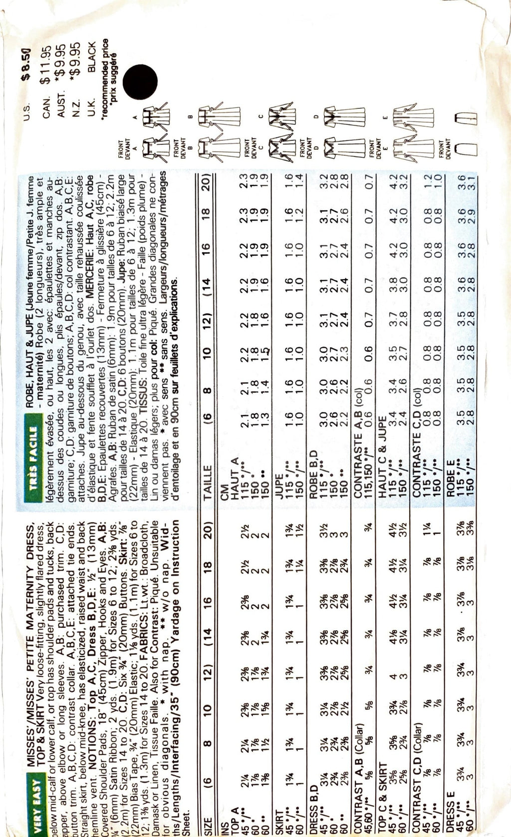 Butterick Classics 5280 | Misses' Petite Maternity Dress, Top, & Skirt | Size 14-20