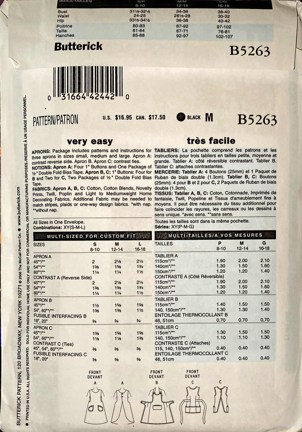 Butterick Waverly B5263 | Aprons | Size S-LG