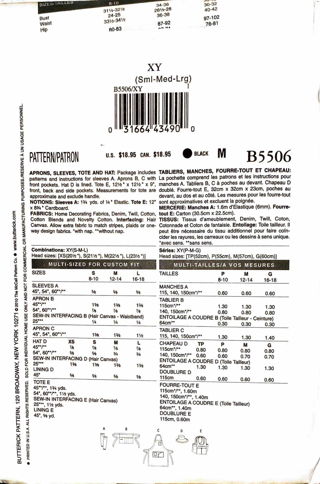 Butterick Waverly B5506 | Aprons, Sleeves, Tote, & Hat | Size S-L