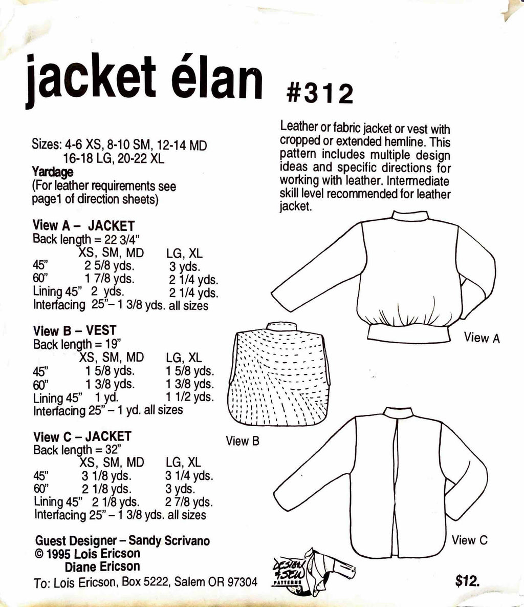 Design & Sew Patterns 312 | Adult's Jacket Elan | Size 4-22
