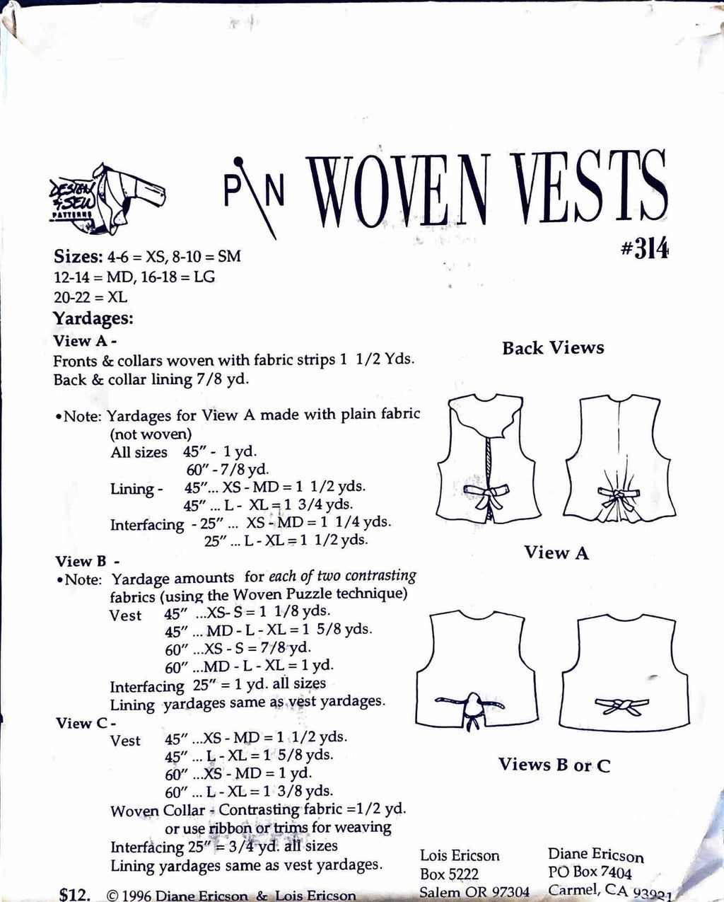 Design & Sew Patterns PIN 314 | Adult's Woven Vests | Size 4-22