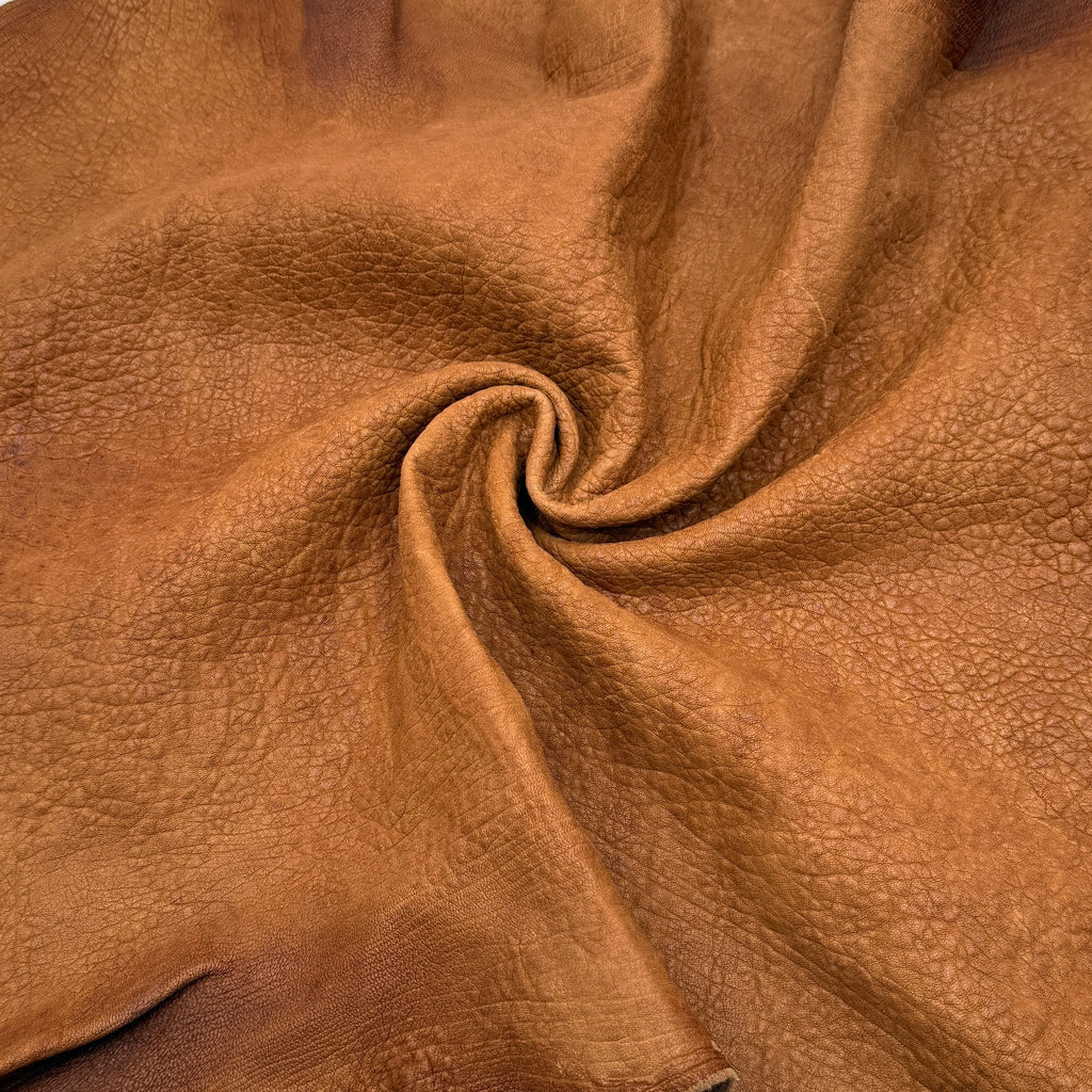 This leather is medium weight and flexible. Suitable for making bags or clothing.