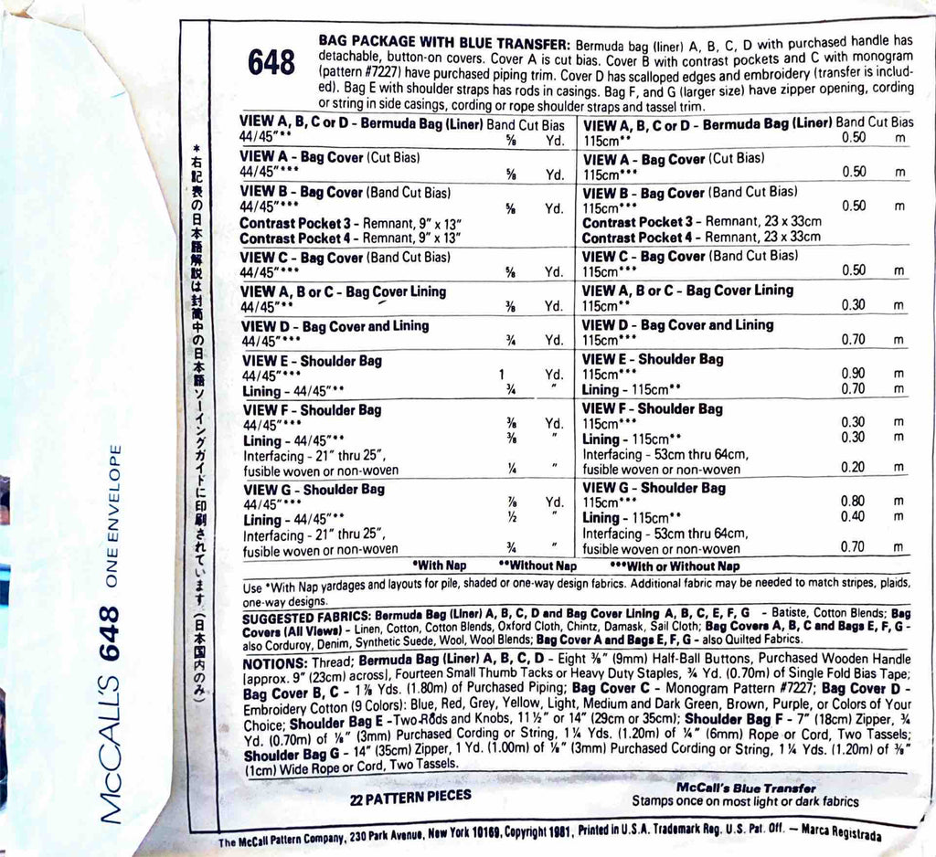 Condition: We believe this pattern is factory folded and complete, based on a quick examination of the package. However, we have not taken it fully out of the package and checked for each pattern piece. It is being sold as-is, based on this understanding, and the understanding that some patterns may be a bit discolored or torn on the outside packaging from age.
