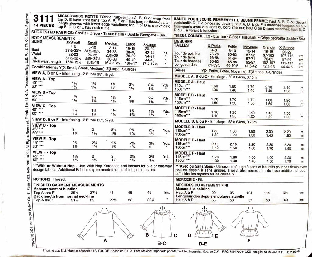 McCall's 3111 | Misses'/Miss Petite Tops | Size XS-M