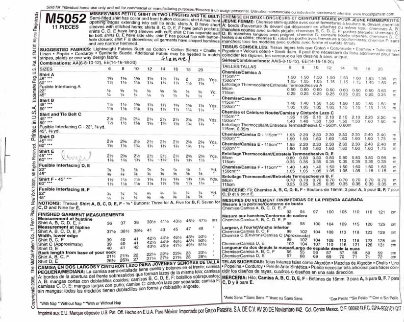 Condition: We believe this pattern is factory folded and complete, based on a quick examination of the package. However, we have not taken it fully out of the package and checked for each pattern piece. It is being sold as-is, based on this understanding, and the understanding that some patterns may be a bit discolored or torn on the outside packaging from age.