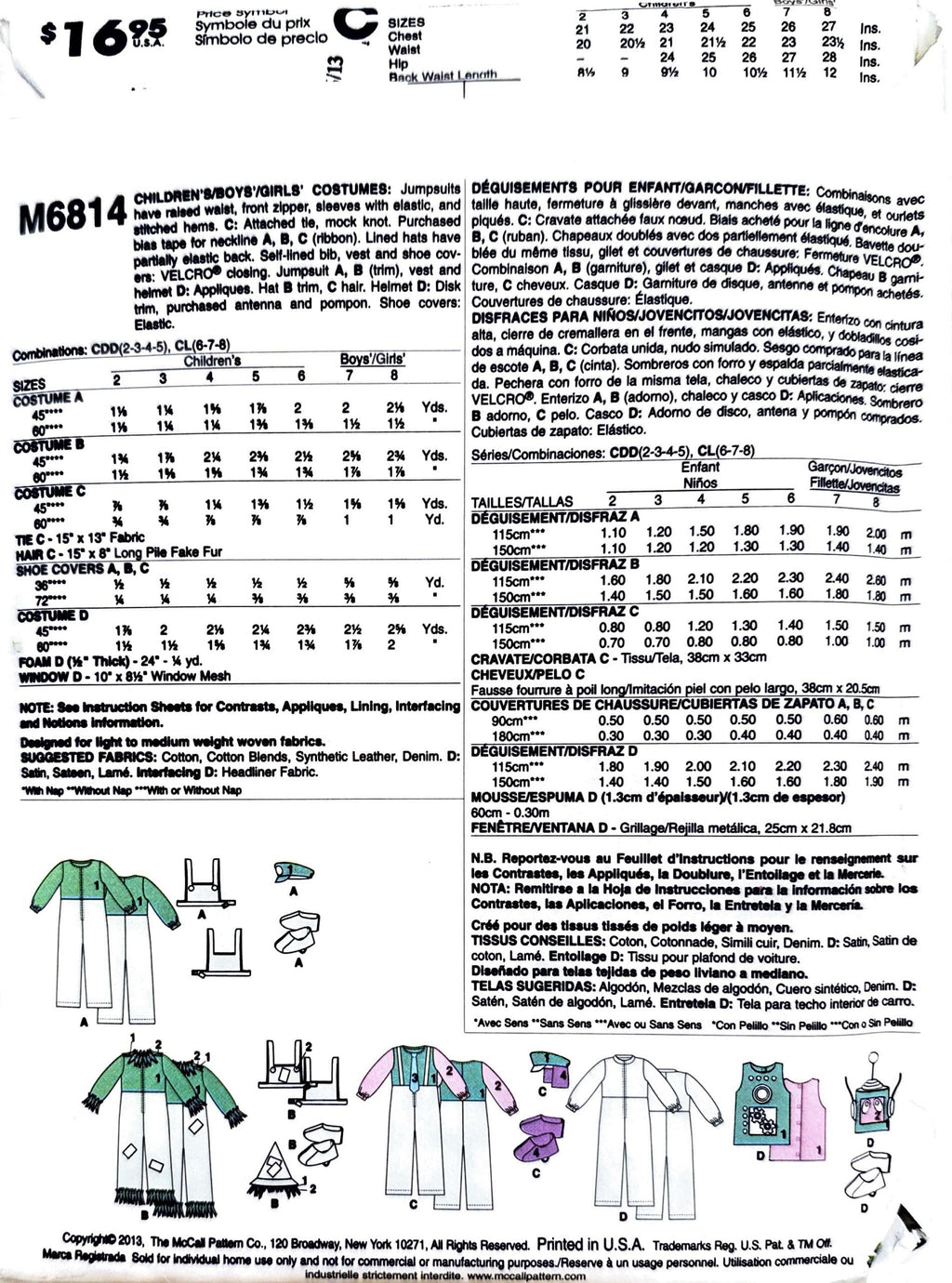 McCall's M6814 | Kids Classic Character Costumes | Sizes 2-5
