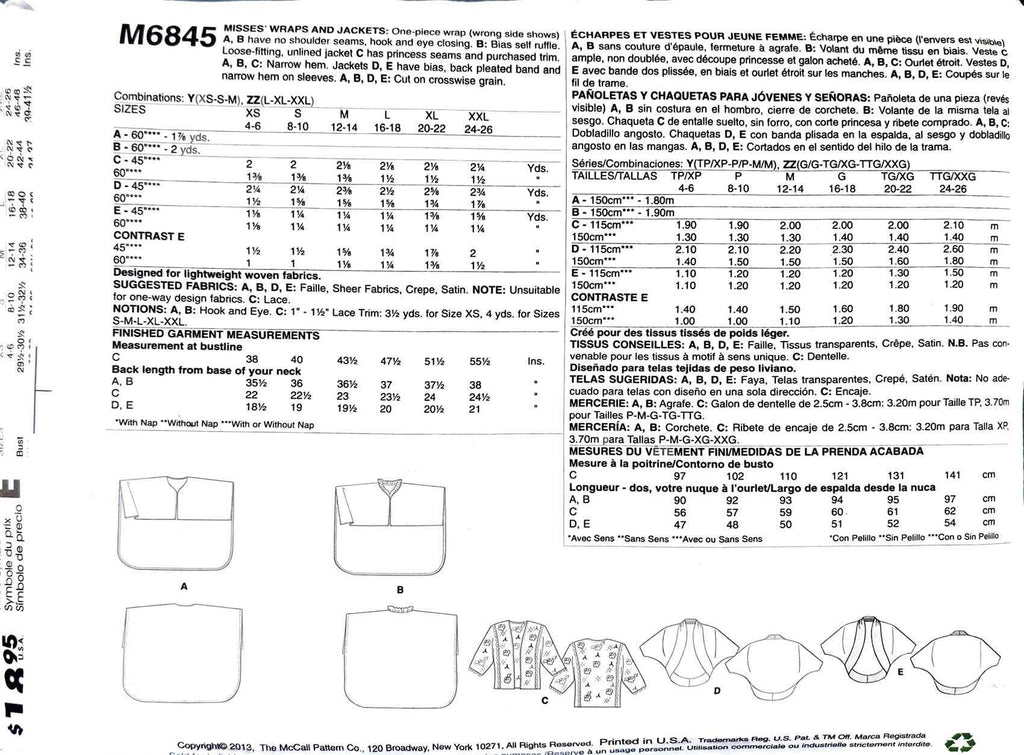 Condition: We believe this pattern is factory folded and complete, based on a quick examination of the package. However, we have not taken it fully out of the package and checked for each pattern piece. It is being sold as-is, based on this understanding, and the understanding that some patterns may be a bit discolored or torn on the outside packaging from age.