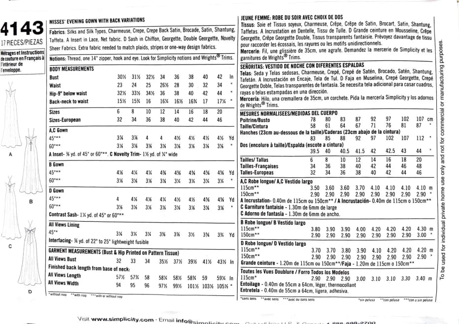 Simplicity 4143 | Misses' Evening Gown with Back Variations | Choose Your Size