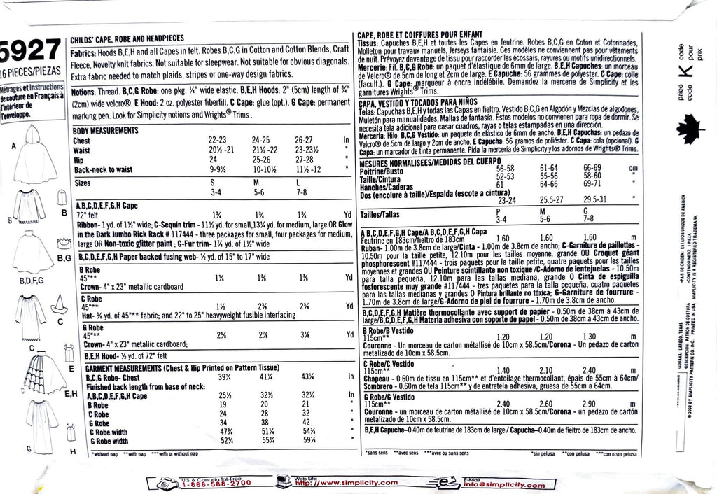Simplicity 5927 | Kids Costumes | Sizes S-L