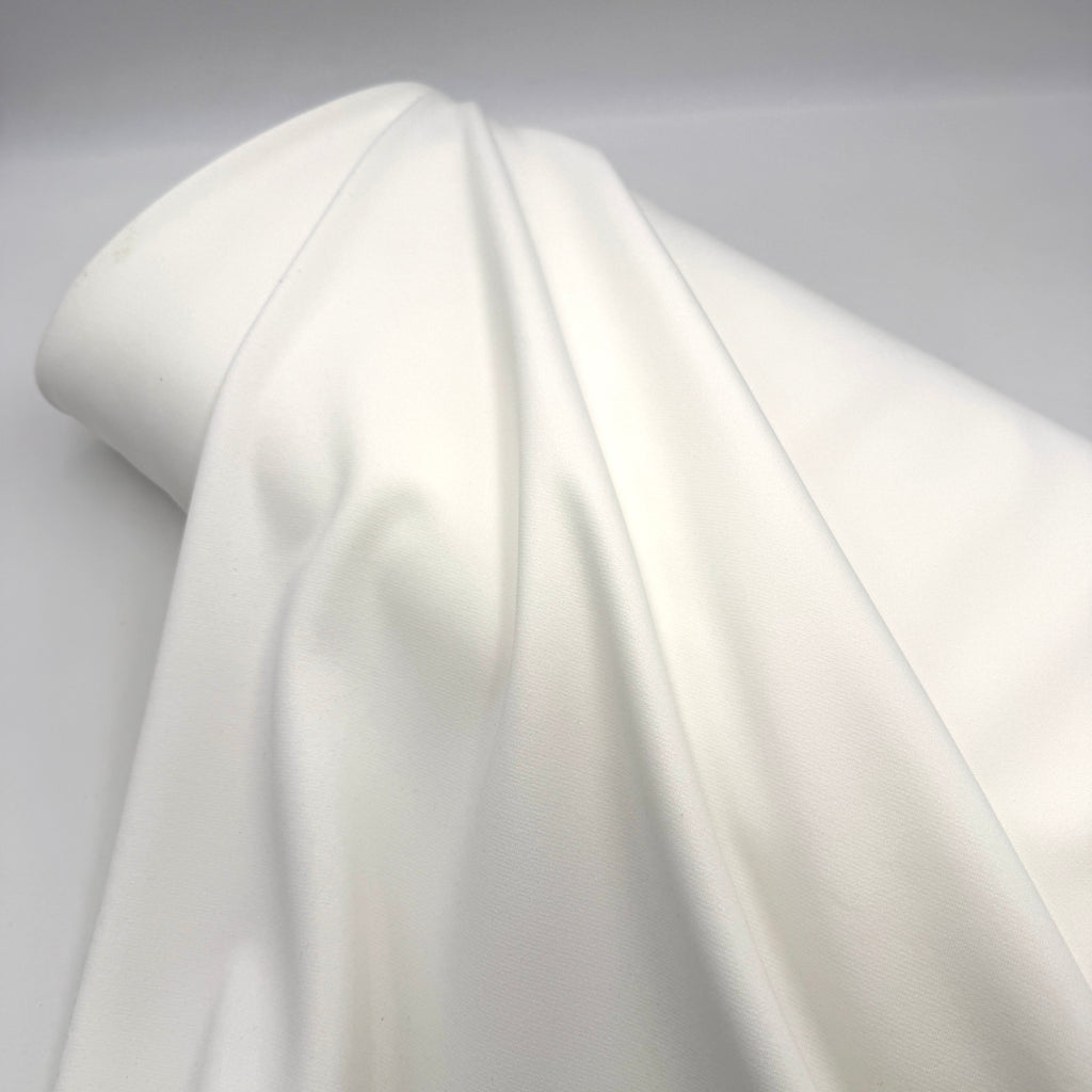 Double knit polyester is a medium-weight, stable fabric with a smooth surface and minimal stretch, offering durability and a clean, structured drape. Ideal for garments like trousers, jackets, and uniforms, it resists wrinkles and holds its shape well.