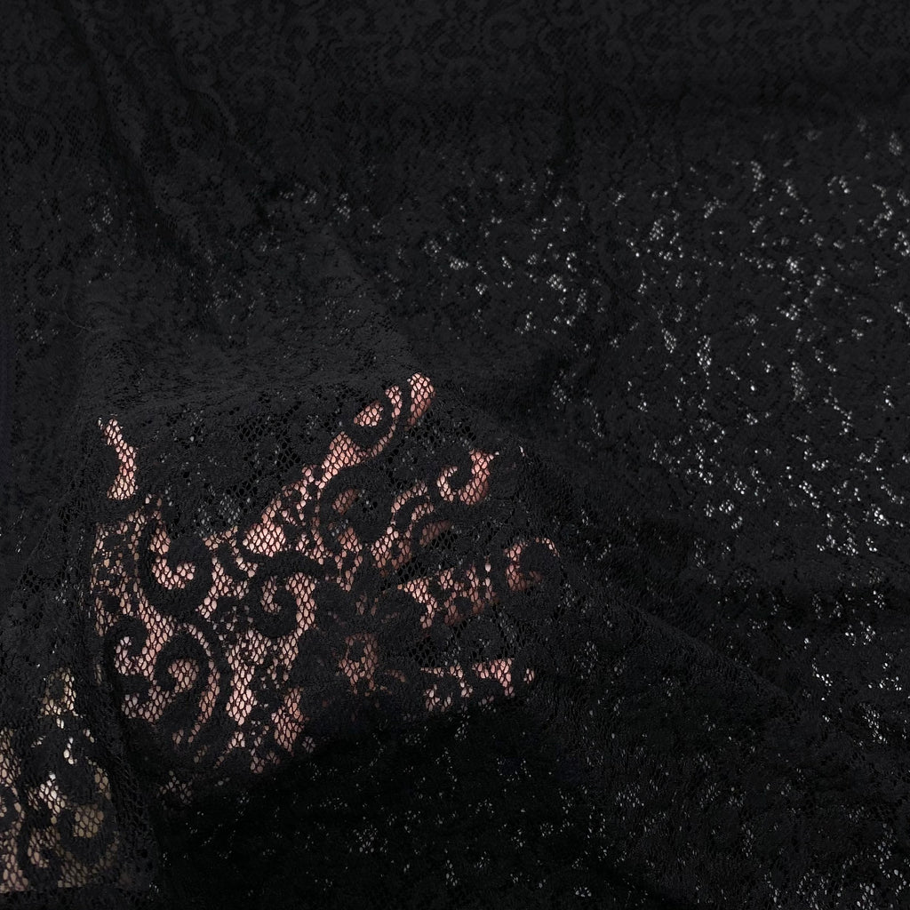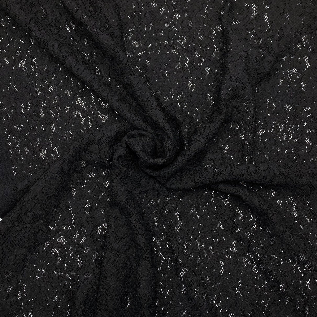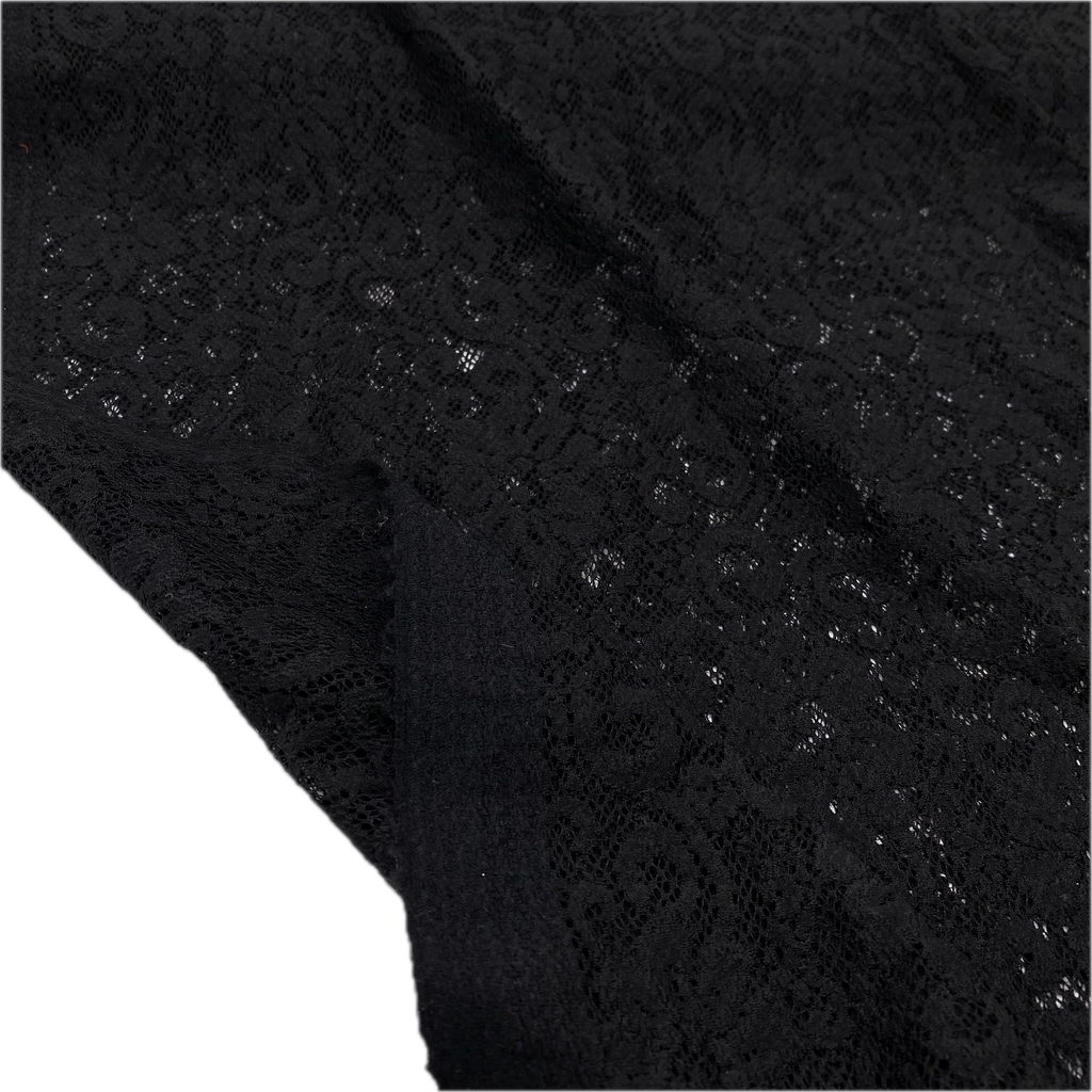 This stretch lace fabric has about 20% stretch in all directions making it excellent for lingerie or other form-fitting garments.