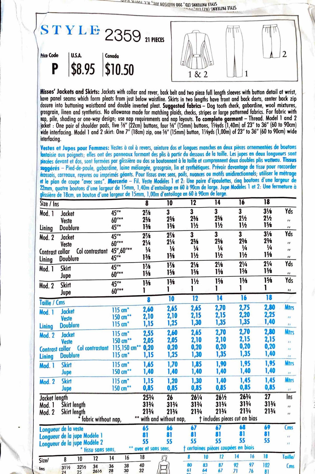 STYLE 2359 | Misses' Jacket and Skirts | Size 8-18