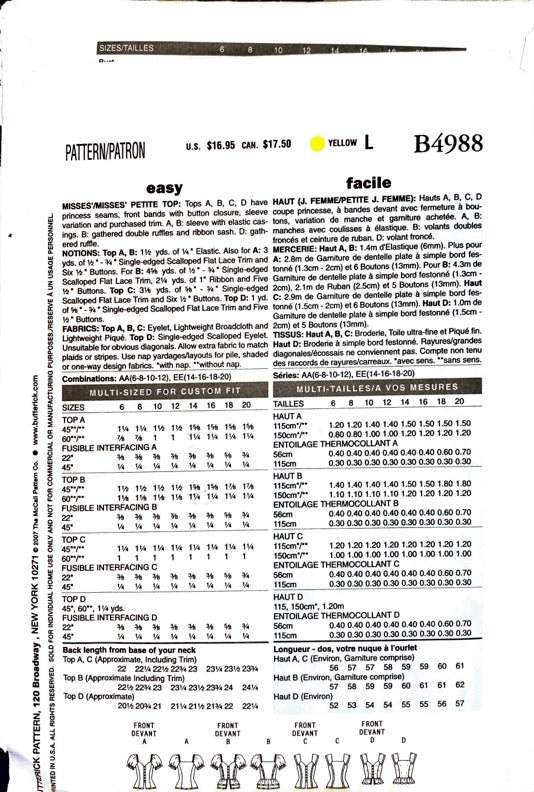 Butterick B4988 | Misses'/Misses' Petite Top | Size 14-20