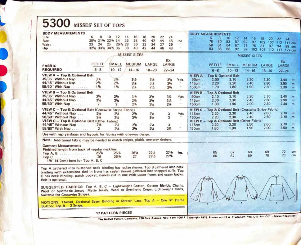 Vintage Marlo's Corner McCall's 5300 | Misses' Set of Tops | Size Small