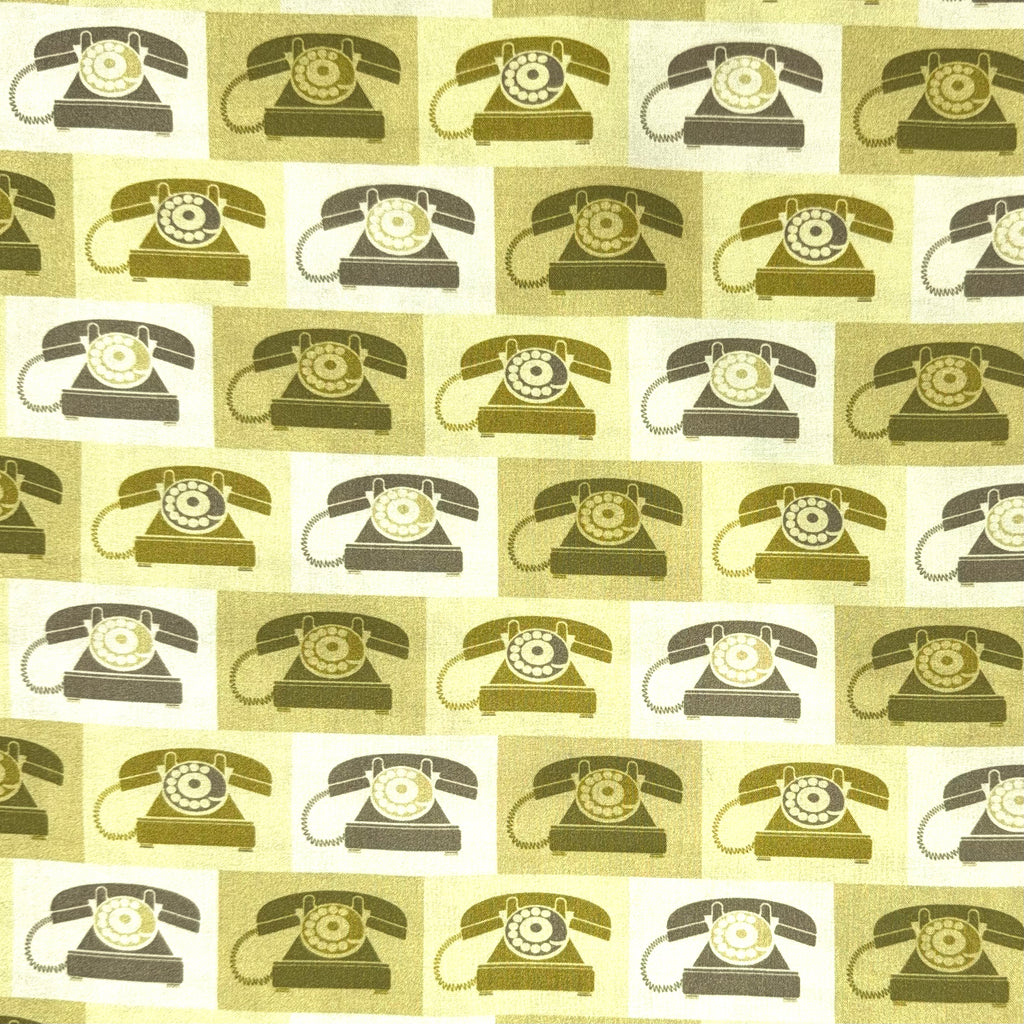 Vintage Telephone Green | Ring Ring | Quilting Cotton